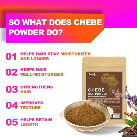 Polvo Chebe para todo tipo de cabello: fortalece y da volumen.