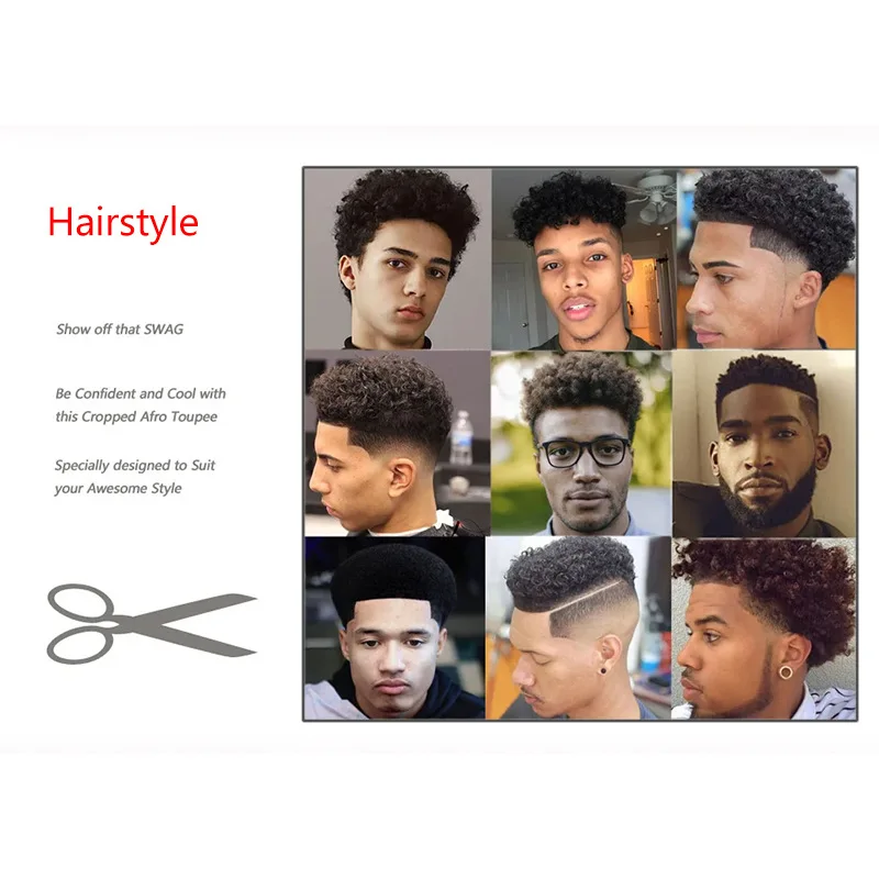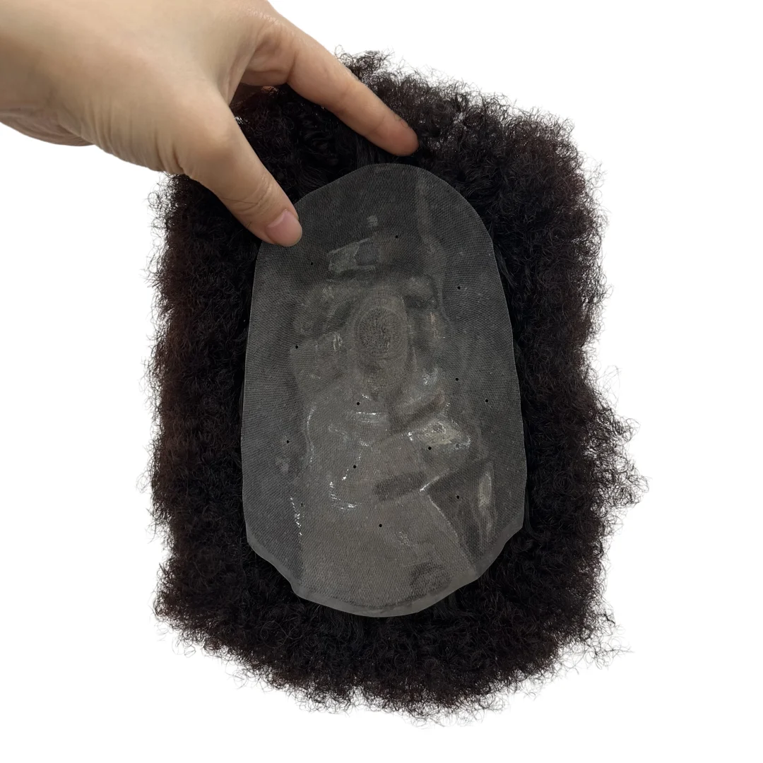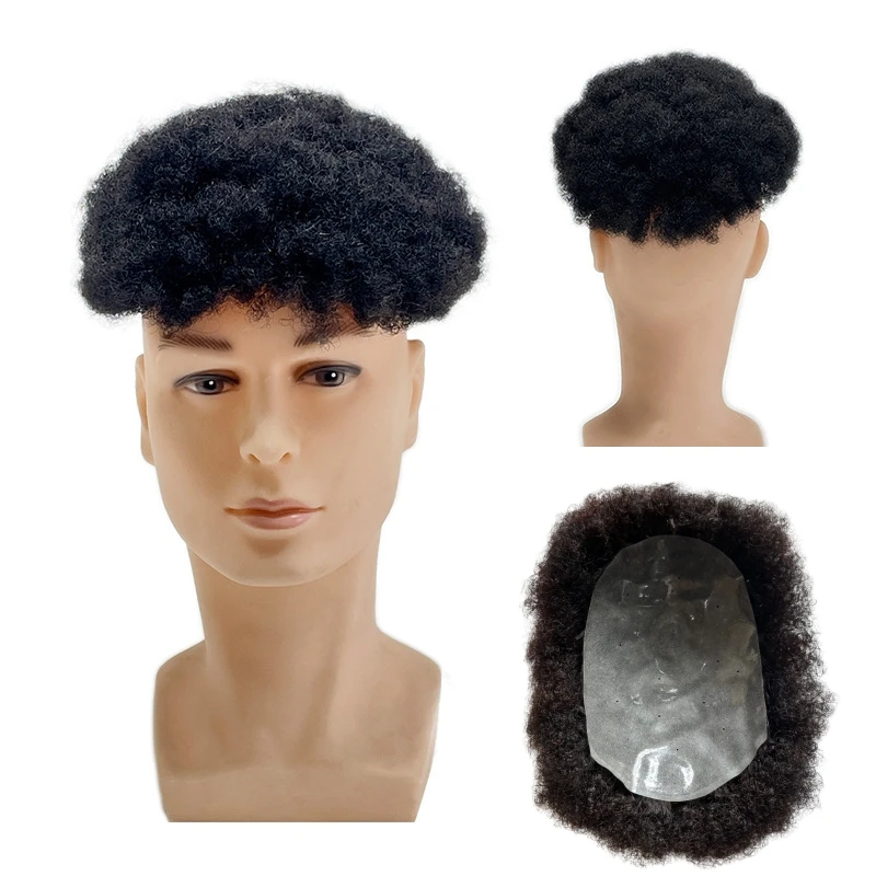 Hair Units For Black Men Hair Replacement System Thin PU Afro Toupee For African American Men European Human Hair Kinky Curly